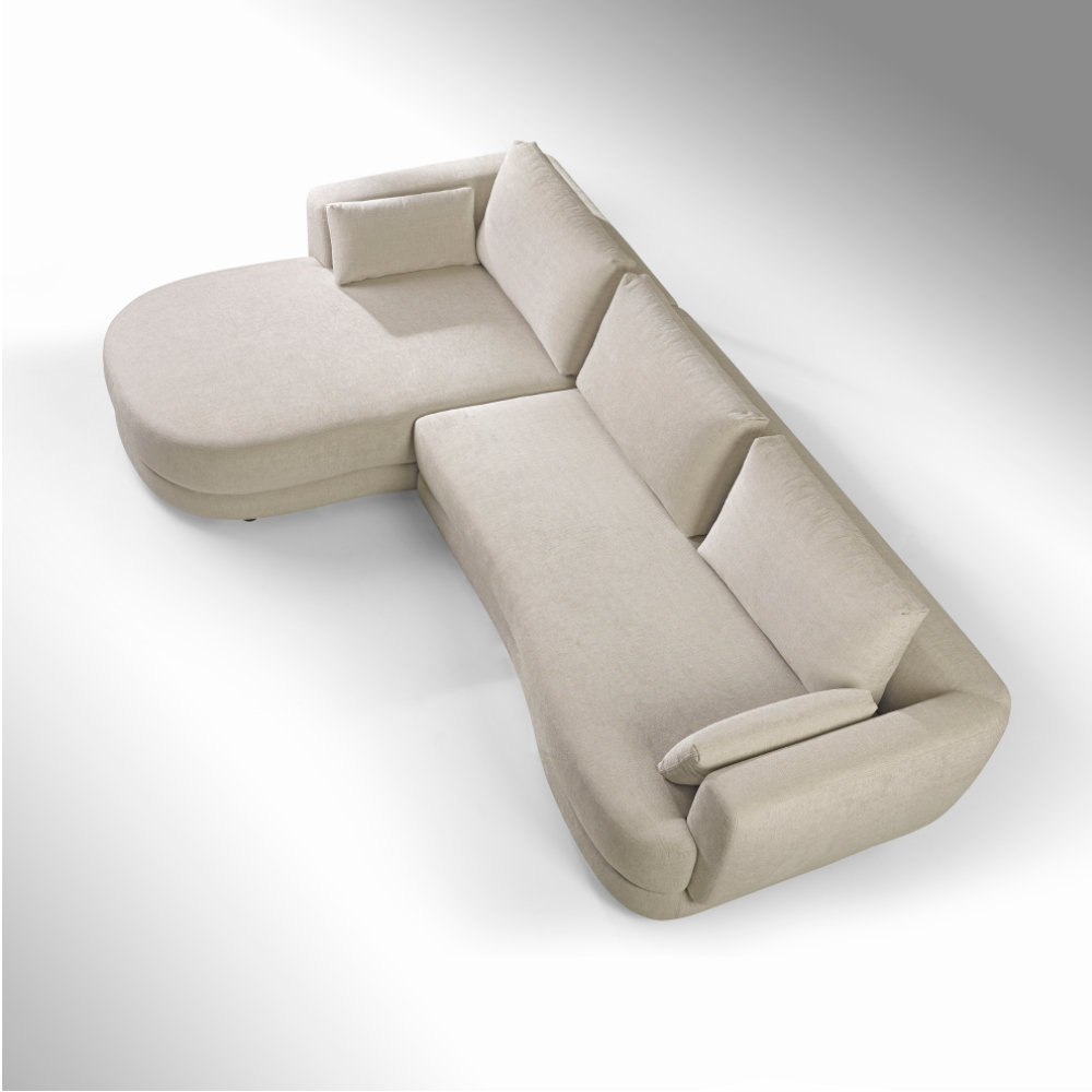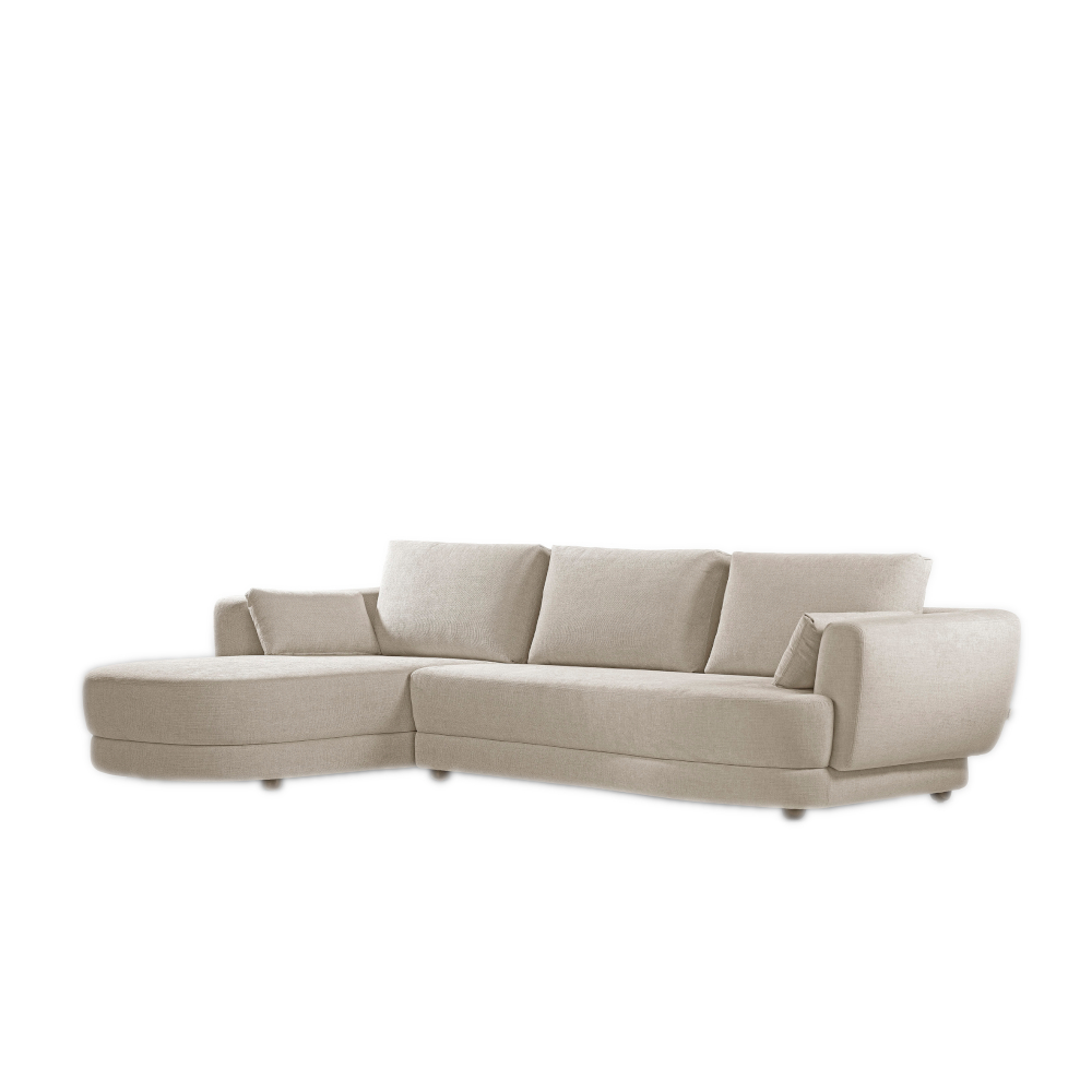 El Sofá Sydney con Chaise Longue destaca por sus dimensiones generosas y líneas elegantes. Incluye dos cojines decorativos y tejido de alta calidad. Además, ofrece un equilibrio perfecto entre confort y diseño, siendo ideal para salones contemporáneos y funcionales.